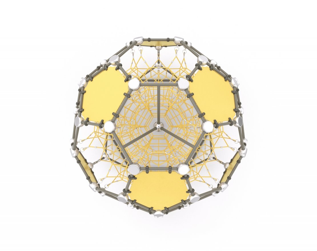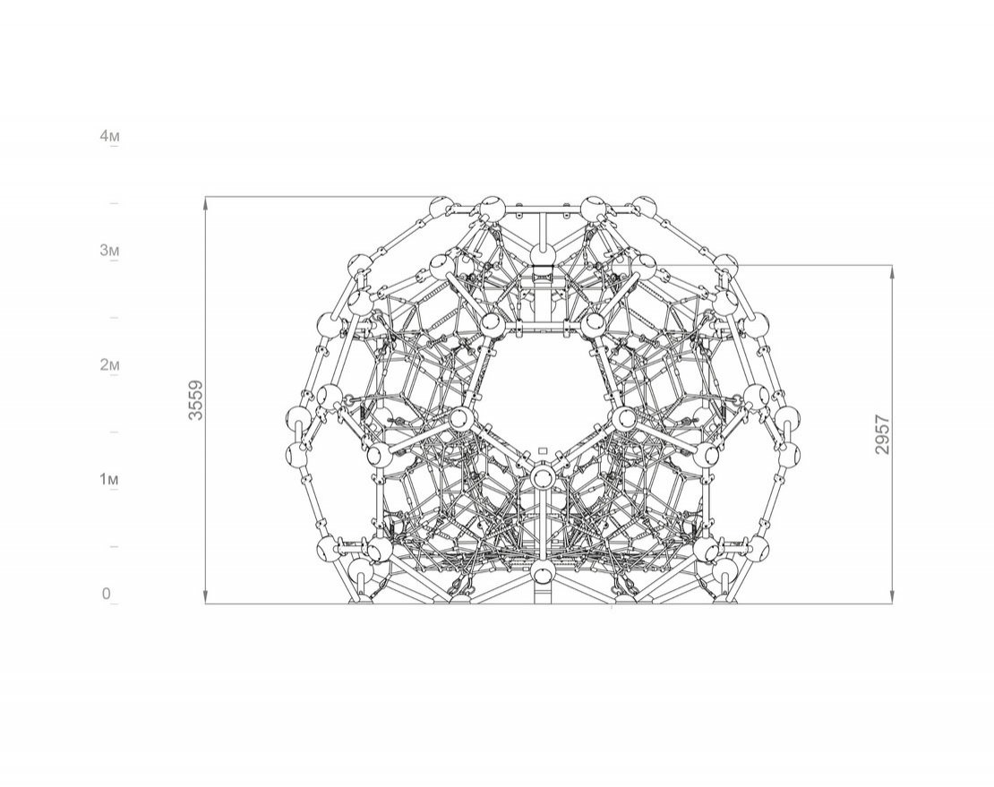 Представляет собой геометрическую фигуру, состоящую из канатной сетки, HDPE панелей и металлического каркаса.