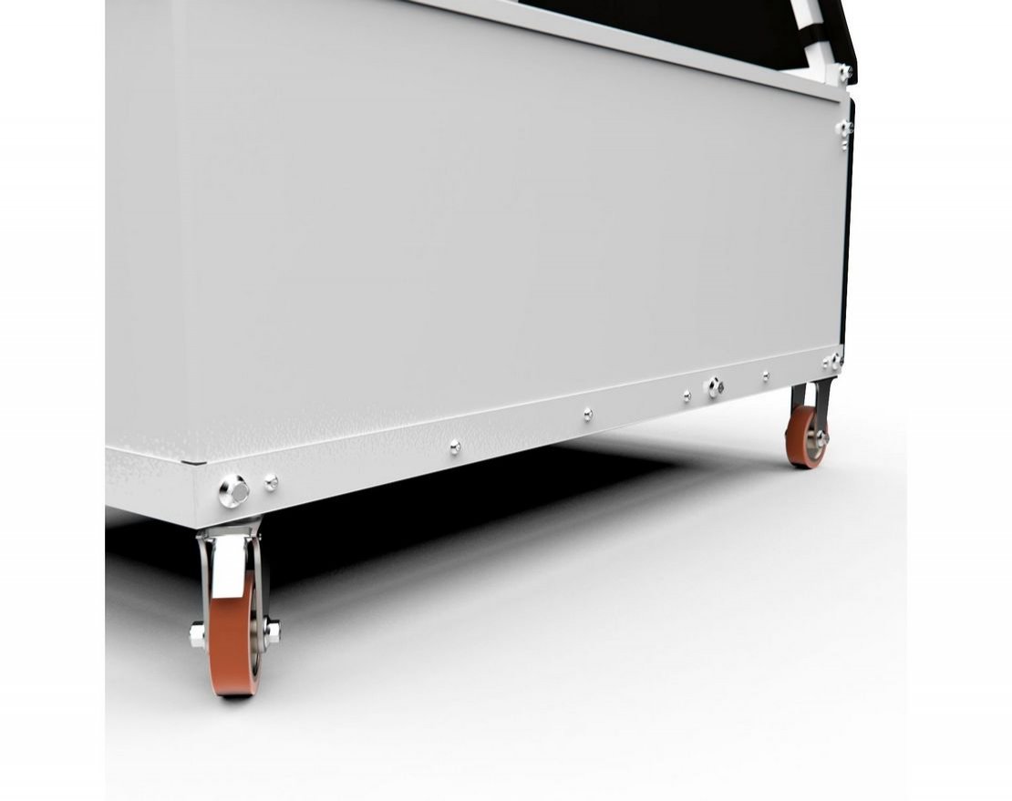 Баскетбольная мобильная стойка имеет щит из поликарбоната. До использования стойки для устойчивости на раму должно быть размещено 250 кг (в комплект не входит).