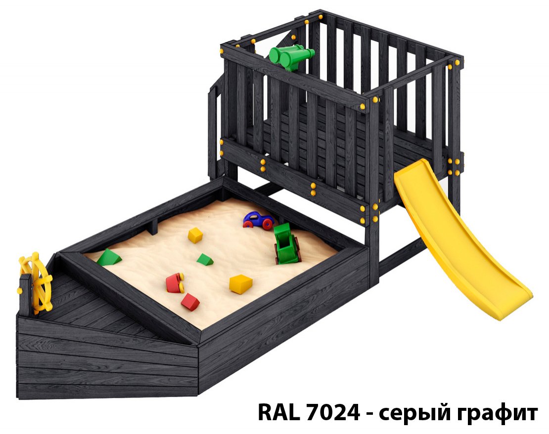 Детская песочница-кораблик и капитанский мостик с горкой с высоты 600 мм.