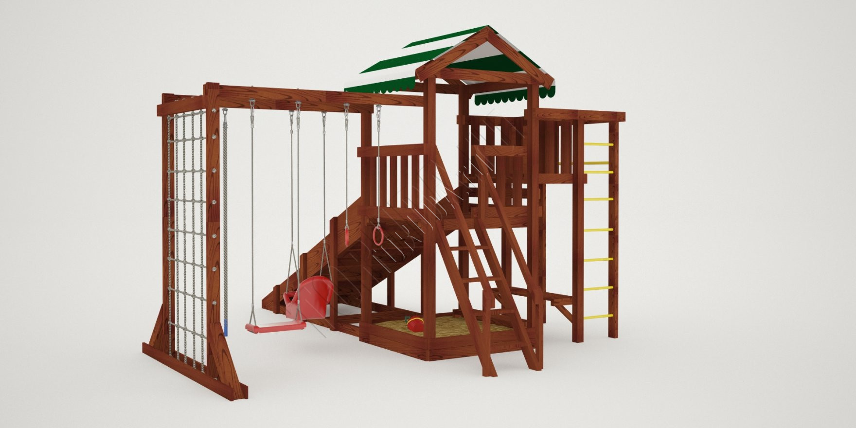 В основе натуральный материал – клееный брус 75х75 мм, который не меняет геометрию со временем, не скрипит и не рассыхается. Конструкция и элементы качельных подвесов разработаны и произведены согласно ГОСТ.