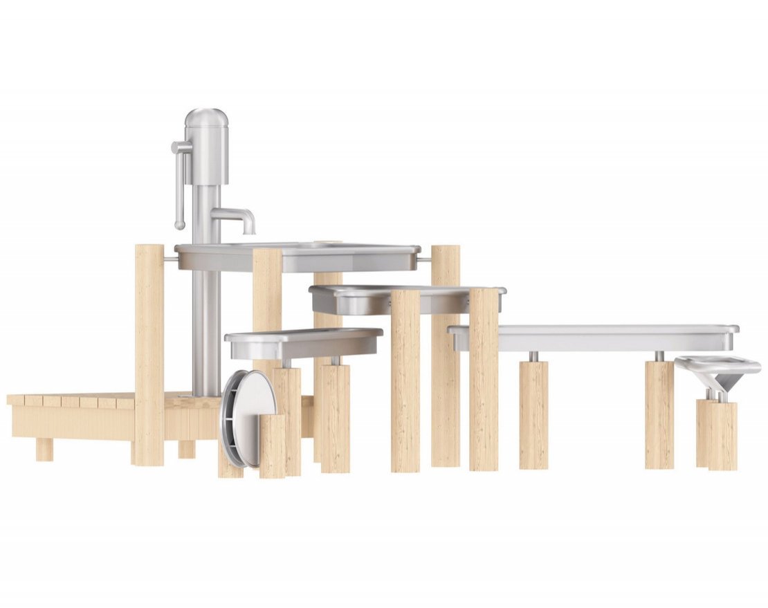 Предназначен для игр с водой и песком и оборудован специальными игровыми элементами.