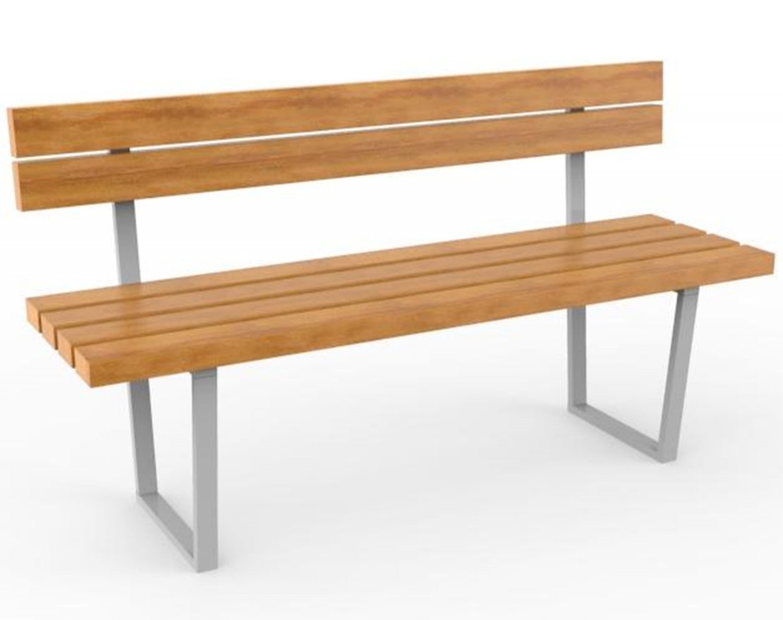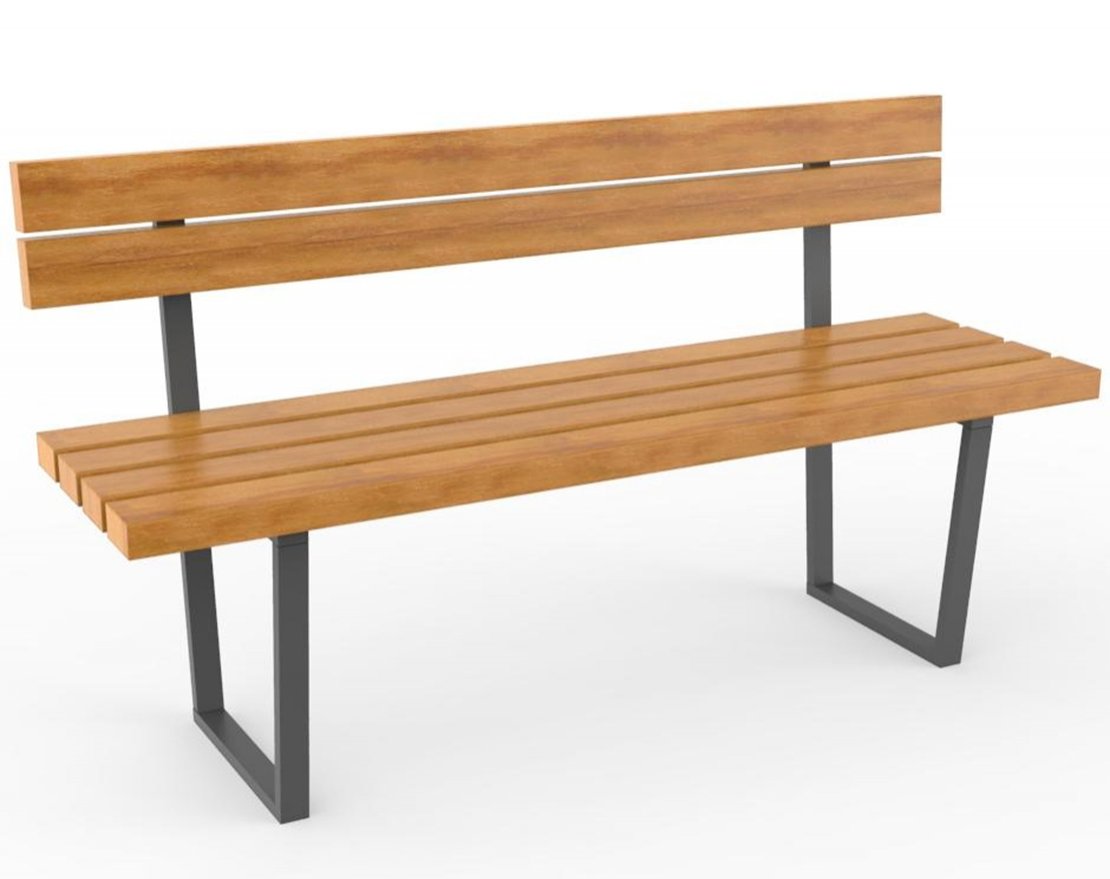 Скамейка предназначена для отдыха в парках, на детских площадках, во дворе и в различных местах отдыха. Скамейка представляет собой металлический каркас и сиденье со спинкой из бруса.