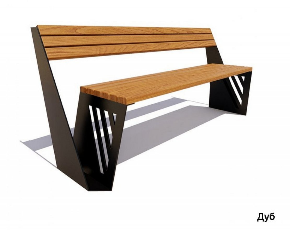 Модель для тех, кто готов к смелым решениям в дизайне, стилистике экстерьера. Нестандартная для уличной скамейки конструкция - прямой угол ножек, спинка под наклоном в 45 градусов. Оптимальная длина 1,2 м позволит гармонично вписать садовую мебель в любое пространство. Скамейка прекрасно подойдет для отдыха в парковой зоне, на загородном участке.