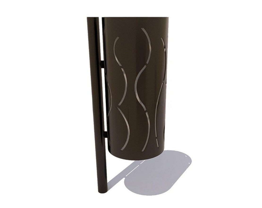 Урна выполнена из стали с антикоррозионным покрытием, устойчивым к круглогодичной эксплуатации на открытом воздухе. Модель состоит из высокой стойки и цилиндрической ёмкости для мусора.