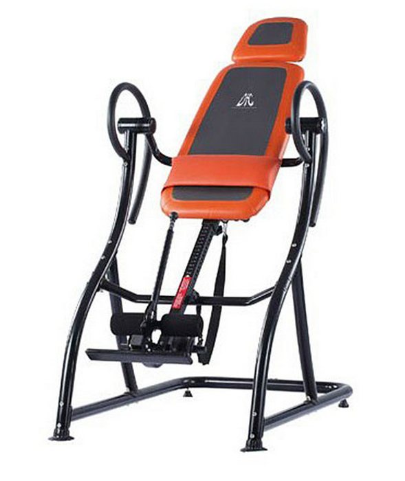 Тренажер, предназначенный для занятий инверсионной терапией, которая осуществляется путем виса вниз головой и приводит к улучшению состояния здоровья, в частности к устранению (снижению) болей в спине, улучшению кровообращения, повышению работоспособности лимфатической системы и повышению иммунитета. Использование инверсионного стола позволяет избавиться от боли в спине путём снятия нагрузки со спины и растяжения межпозвоночных дисков.